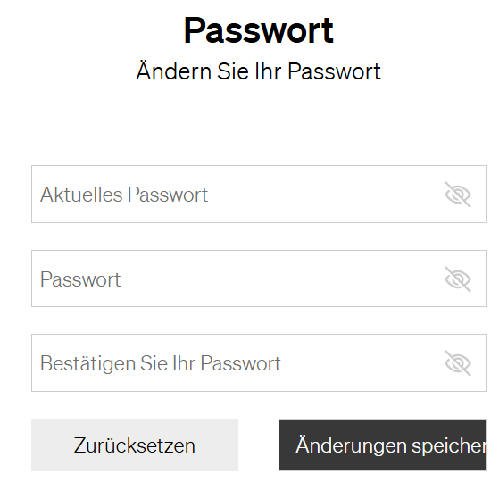 - Geben Sie Ihr aktuelles Passwort und das neue Passwort ein, das Sie verwenden möchten.