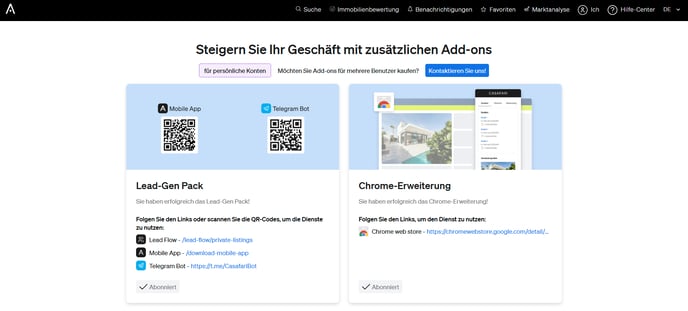 Nach der Anmeldung können Sie unterstützte Immobilienportale durchsuchen. Die Erweiterung zeigt automatisch wichtige CASAFARI-Informationen an, darunter: