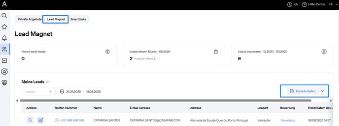 Im Lead Magnet-Dashboard können Sie: