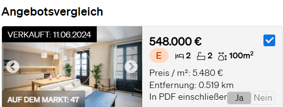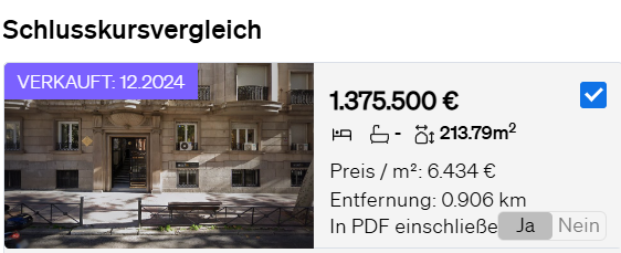 - Hier finden Sie eine Liste mit Vergleichsobjekten, darunter auch verkaufte Immobilien.