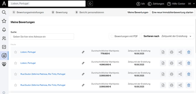- WĂ€hlen Sie in Ihrem Dashboard das Tool zur Immobilienbewertung aus.
