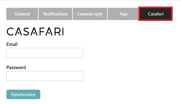2. Go to the “CASAFARI” tab and enter your CASAFARI account email and password.