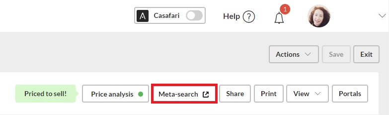 3. Click on the option “Metasearch” and see all ads for this property on CASAFARI.