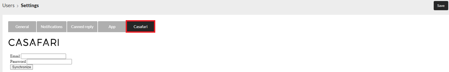 2. In the "CASAFARI" tab, configure the data for synchronization: