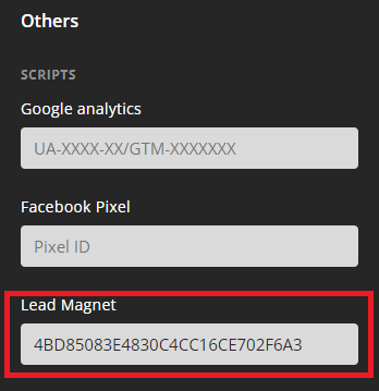 2. In the "Configurations" option set the key for activating CASAFARI's Lead Magnet: