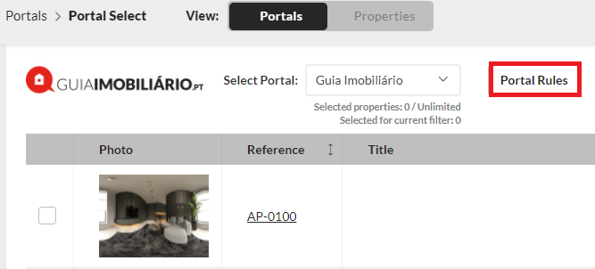 1. Go to Properties - Portals - Property Selection.