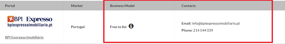 How to consult the business model and contacts of each portal?
