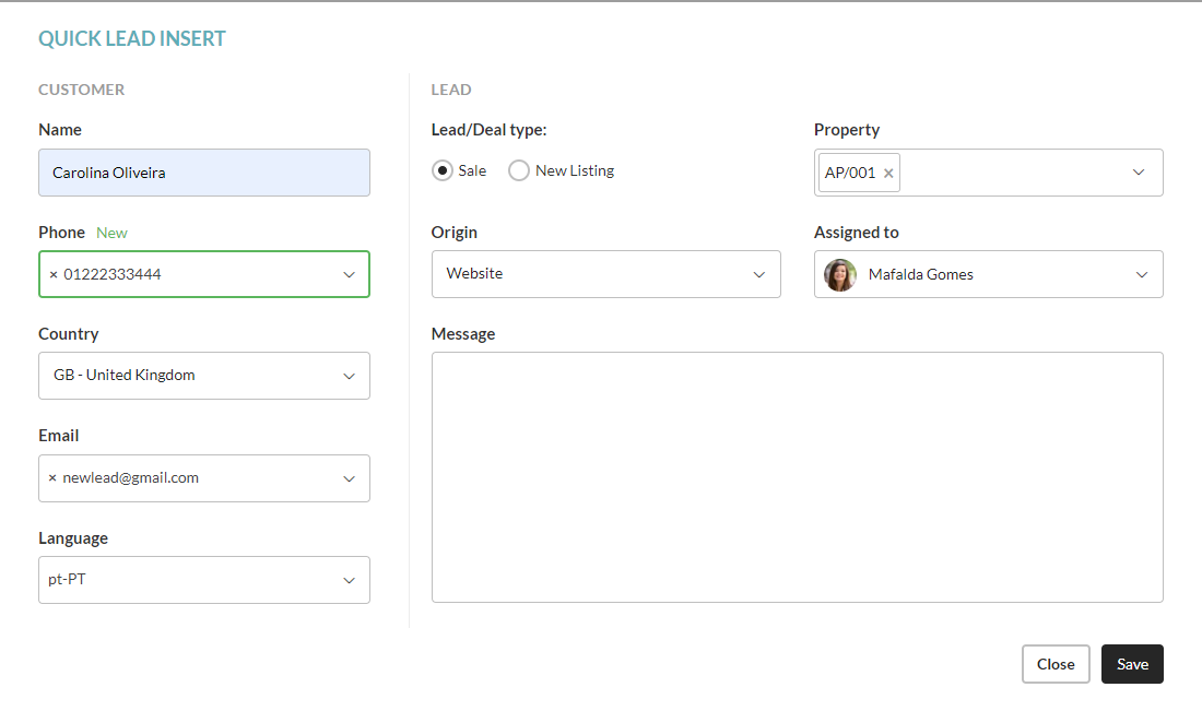 Through the list of private properties available on all real estate portals, it is possible to add a prospecting lead: