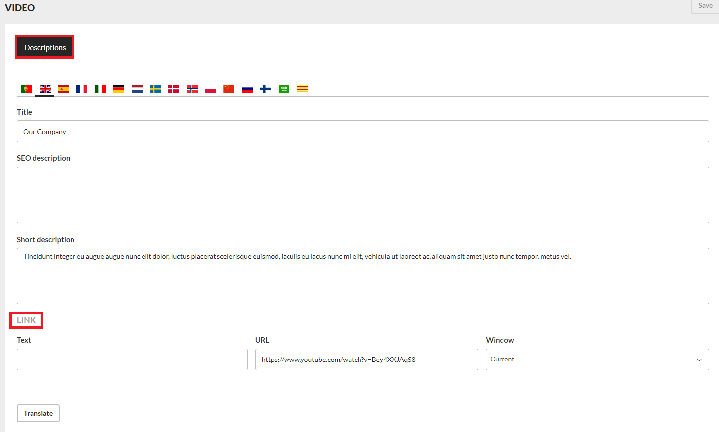 2. Go to the “Descriptions” tab, write an adapted text and apply translations.