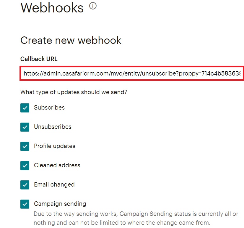 5. Paste the link obtained in CASAFARI CRM in the “Callback URL” field.