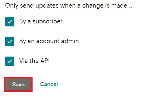 7. Make sure you have enabled all the options in the section “Only send updates when a change is made...” and click on "Save".