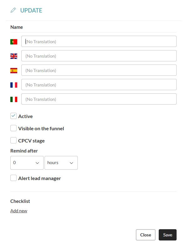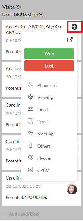 Notice: The leads that are inserted into the CRM (manually or imported from the website and portals) will appear in the funnel associated with the first status. As you change the status in the lead, you should access the funnel and update accordingly.