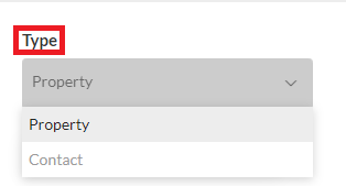 3. Indicate in Type if the label will be added to Properties or Contacts.