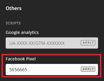 2. In the “Others” section, put the Facebook password in the “Facebook Pixel” option.