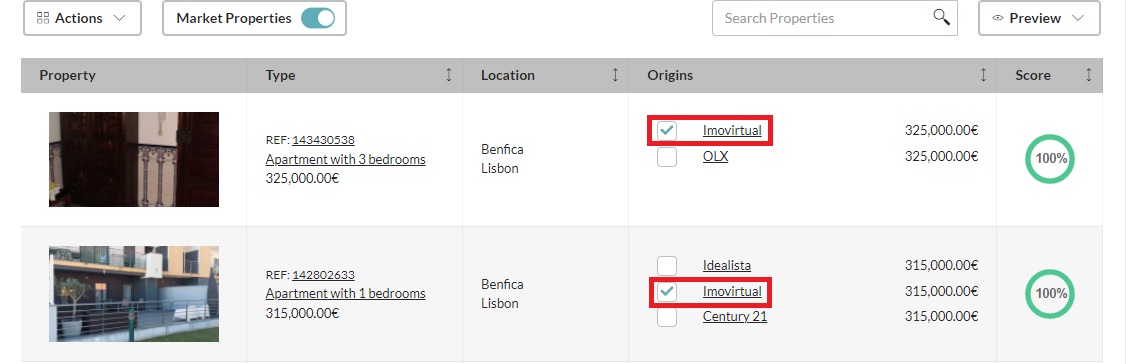 *The option “Market Properties”, will only appear available for agencies that already have their CASAFARI account connected to CRM. Consult the FAQs of our Academy to know how to do it.