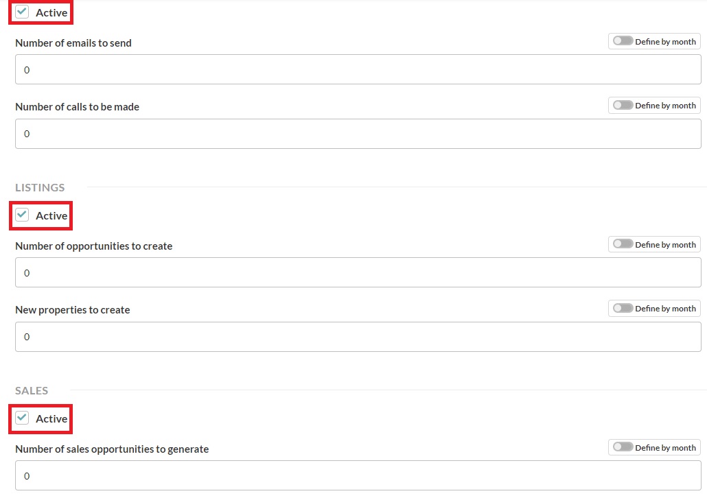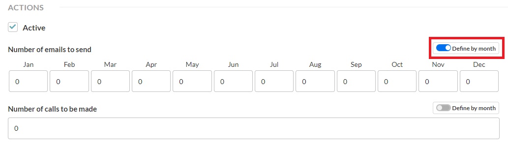 These numbers will be set for every month of the year. However, if you want to have different goals for each month, activate the option "Set per month" and write the number to achieve in each of them.