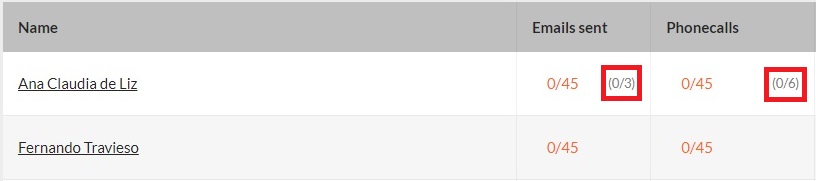 For this case, we see that this agent's goal is x e-mails sent (on the right side) and so far he has sent only y, and so on for the following metrics.