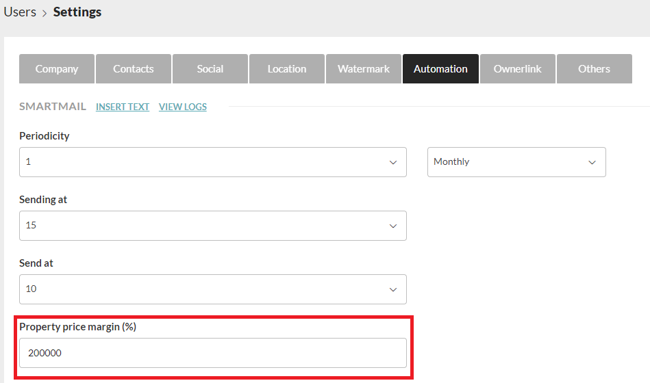 3. Set a price margin for Smartlink to include properties with % above and below the indicated: