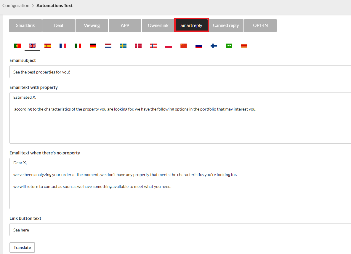 Smartreply - It is an automation that allows sending an email when a lead is created in the CRM.