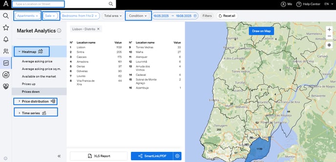 CASAFARI offers a Market Analytics tool that allows you to: