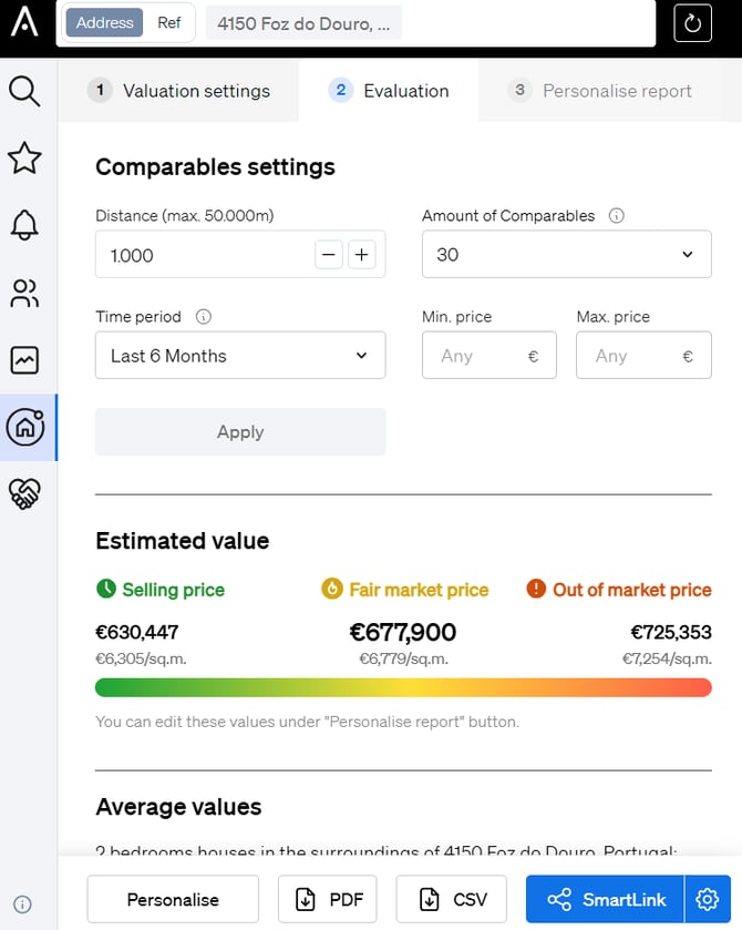 Access your CASAFARI account using your login credentials. - Access the Valuation Tool: