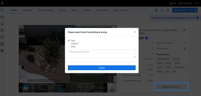 If you encounter a bug while browsing listings or using CASAFARI tools, please follow the steps below to report it:
