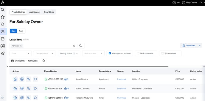 - 🔍 Filter private seller leads by property type, location, price, and other criteria.