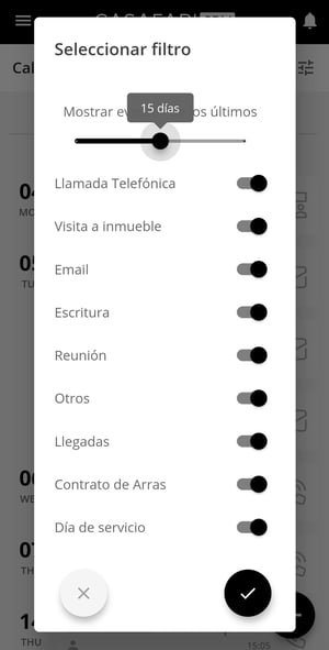 2. Filtra por los últimos 15 o 30 días y por tipo de evento para ver eventos pasados.