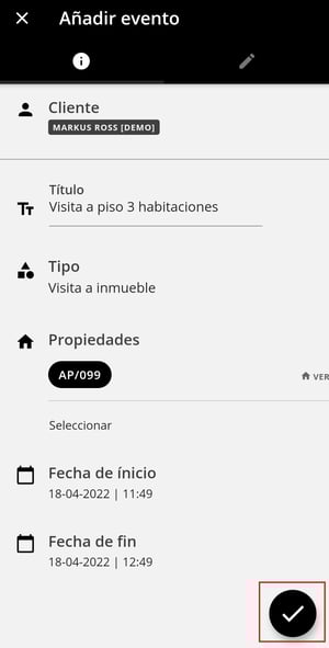 No es posible cambiar el estado de la propiedad en la aplicación. Para activar la nueva propiedad, debe hacerlo desde el CRM.