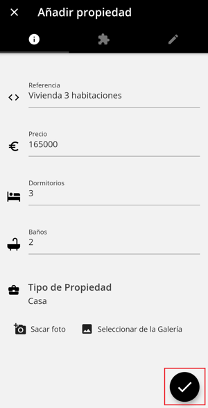 2. Establece la referencia, precio, número de dormitorios, baños y tipo de propiedad. Haz una foto o elige imágenes de tu galería.
