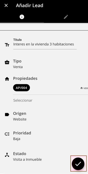 1. En la esquina inferior derecha, haz clic en el botón + para añadir un nuevo lead.