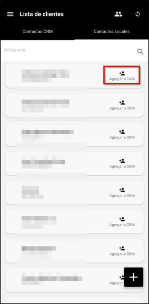 1. En la esquina inferior derecha, haz clic en el botón + para añadir un nuevo cliente.