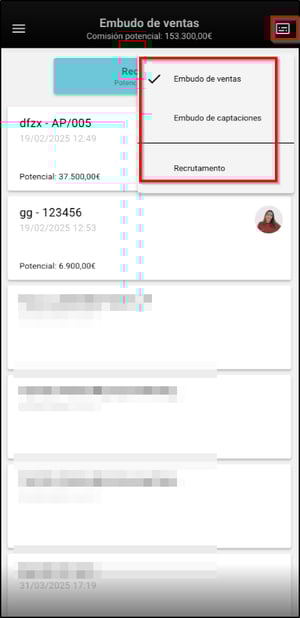 1. Acceda a los embudos creados en el CRM: Ventas/Captaciones y Personalizados: