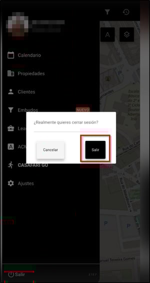 1. Accede al menú principal de la APP y haz clic en "Salir".