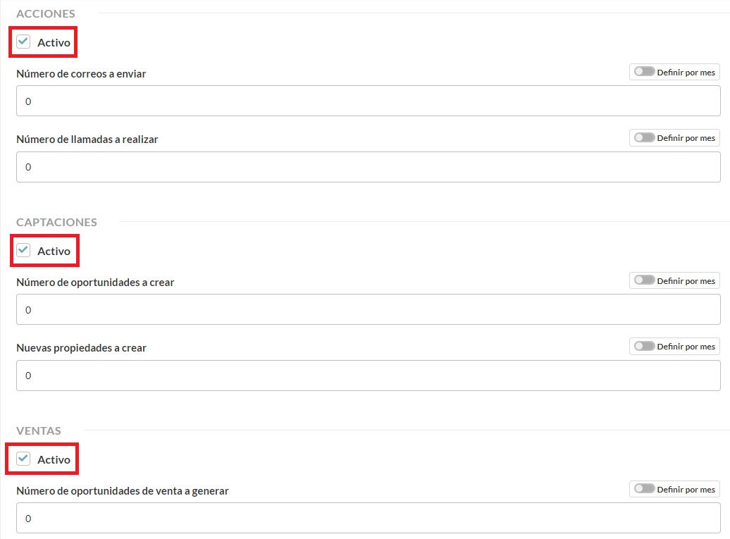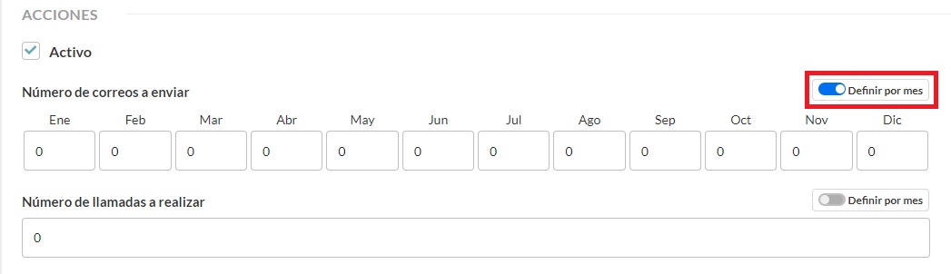 Estas cifras se fijarán para cada mes del año. Sin embargo, si quieres tener diferentes objetivos para cada mes, activa la opción "Establecer por mes" y escribe el número a conseguir en cada uno de ellos.
