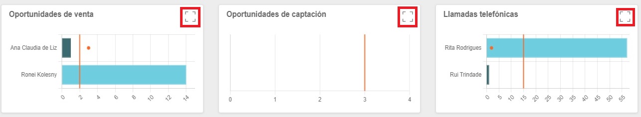 Resumen del rendimiento y los objetivos del usuario/equipo en las oportunidades de venta del mes actual y de los últimos 11 meses. Filtrar por todos, oportunidades ganadas o perdidas.