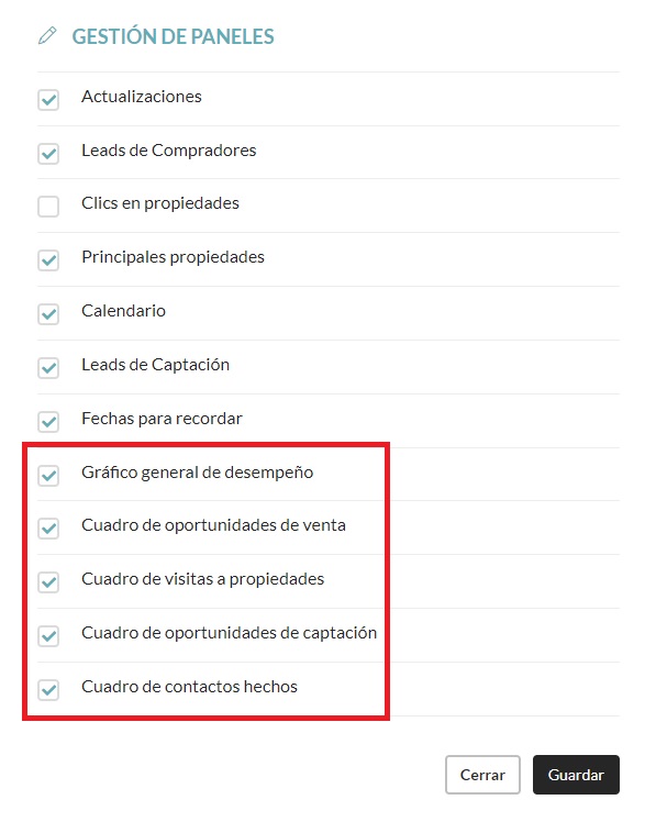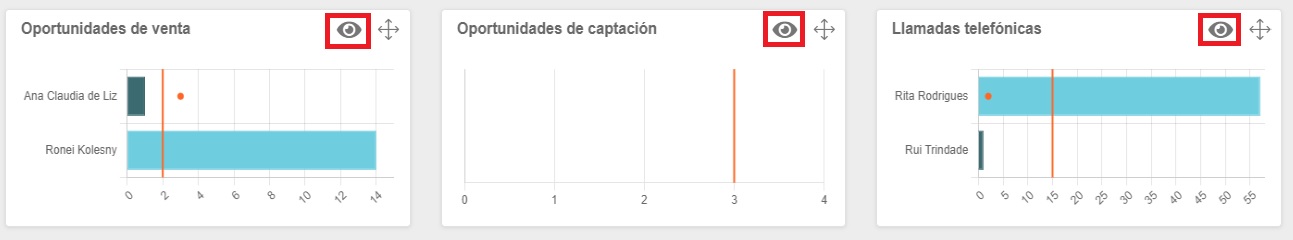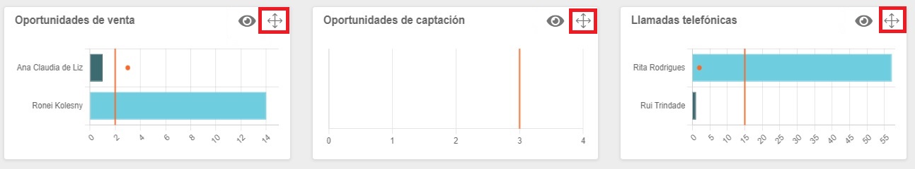 Puedes mostrar u ocultar un gráfico y reordenarlo en el orden que desees y esta es una configuración que cada agente puede hacer en su cuenta.
