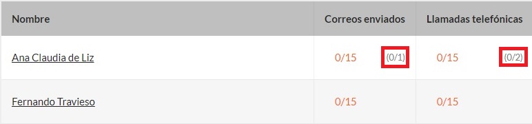 Para este caso, vemos que el objetivo de este agente es de x correos electrónicos enviados (en el lado derecho) y hasta ahora sólo ha enviado y, y así sucesivamente para las siguientes métricas.