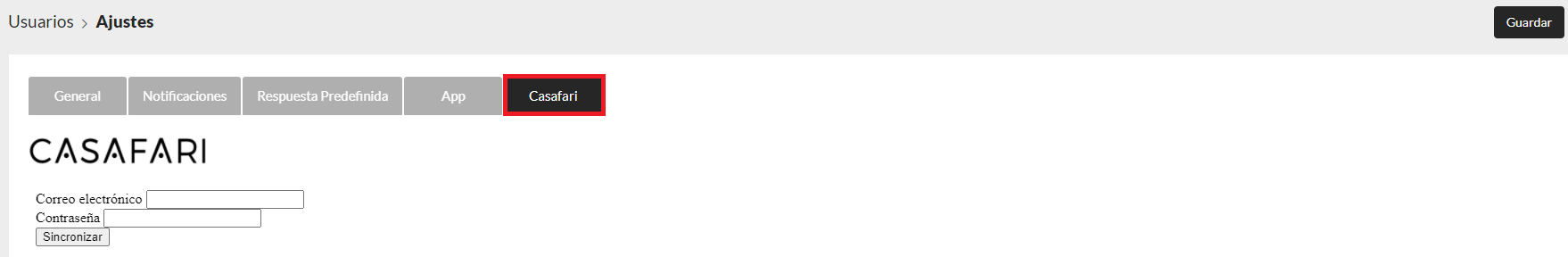 2. En la pestaña "CASAFARI", configura los datos para la sincronización: