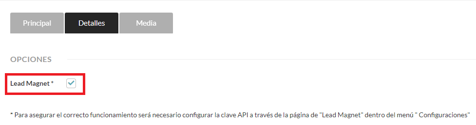 5. En la pestaña "Detalles" activa la opción "CASAFARI Lead Magnet":