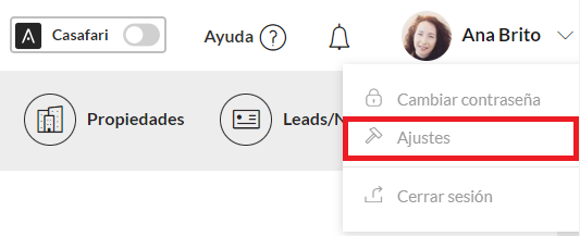 1. En CRM, ve a tu perfil y haz clic en "Configuración":