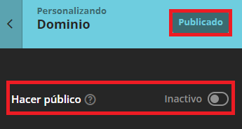 Después de configurar el dominio en CRM, debes activar la opción "Hacer público" y hacer clic en "Publicar" para que Google pueda indexar el contenido del sitio web.