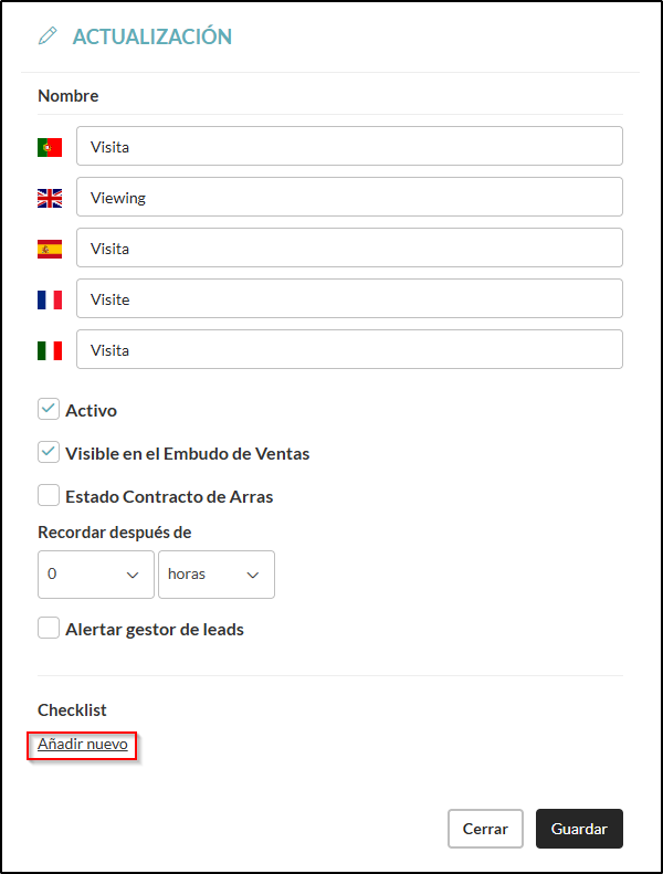 2. Selecciona el estado del lead al que quieres añadir la checklist.