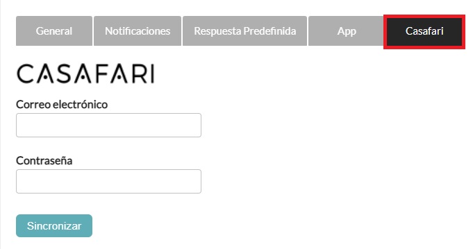 2. Abre la pestaña “CASAFARI” e introduce el correo electrónico y la contraseña de tu cuenta CASAFARI.