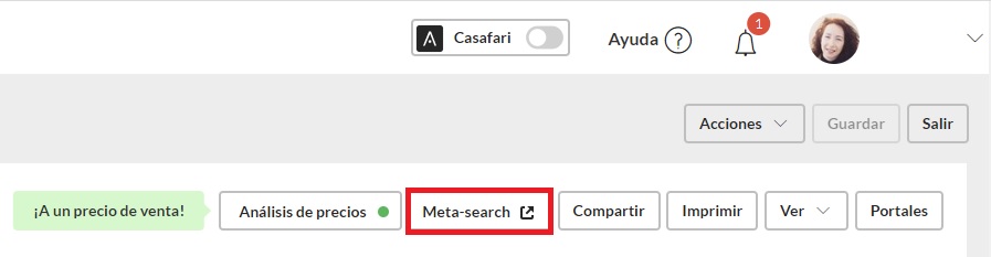 3. Haz clic en la opción "Metasearch" y consulta todos los anuncios de este inmueble en CASAFARI.