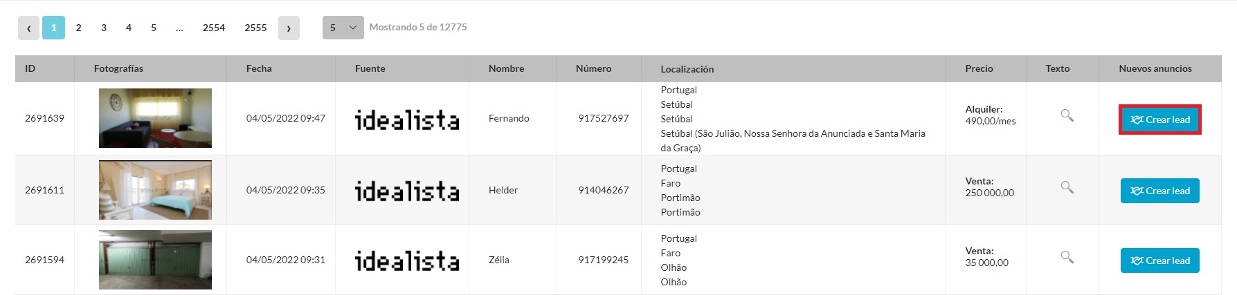 4. Haz clic en "Crear Lead" para añadir un nuevo negocio.