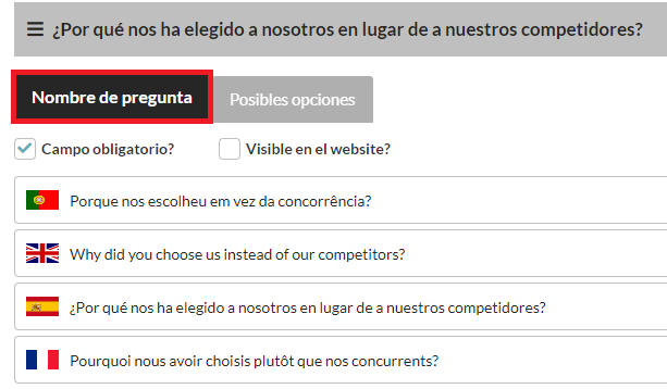 4. Introduce el Nombre de la pregunta y tradúcelo automáticamente: