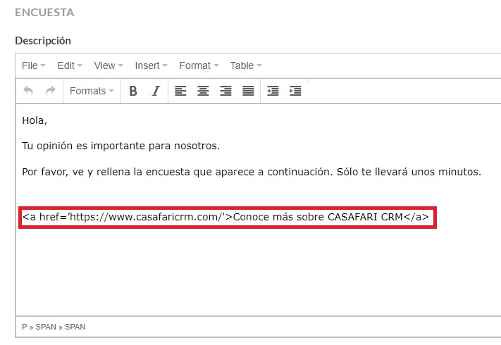 3. Puedes añadir un enlace al texto introductorio de la encuesta.