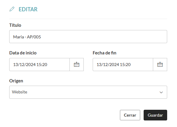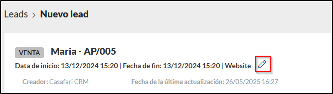 4. Haga clic en el botón para editar el título, la fecha y el origen del lead: