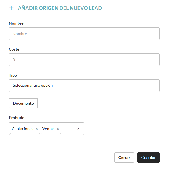 Cómo añadir un origen a un lead